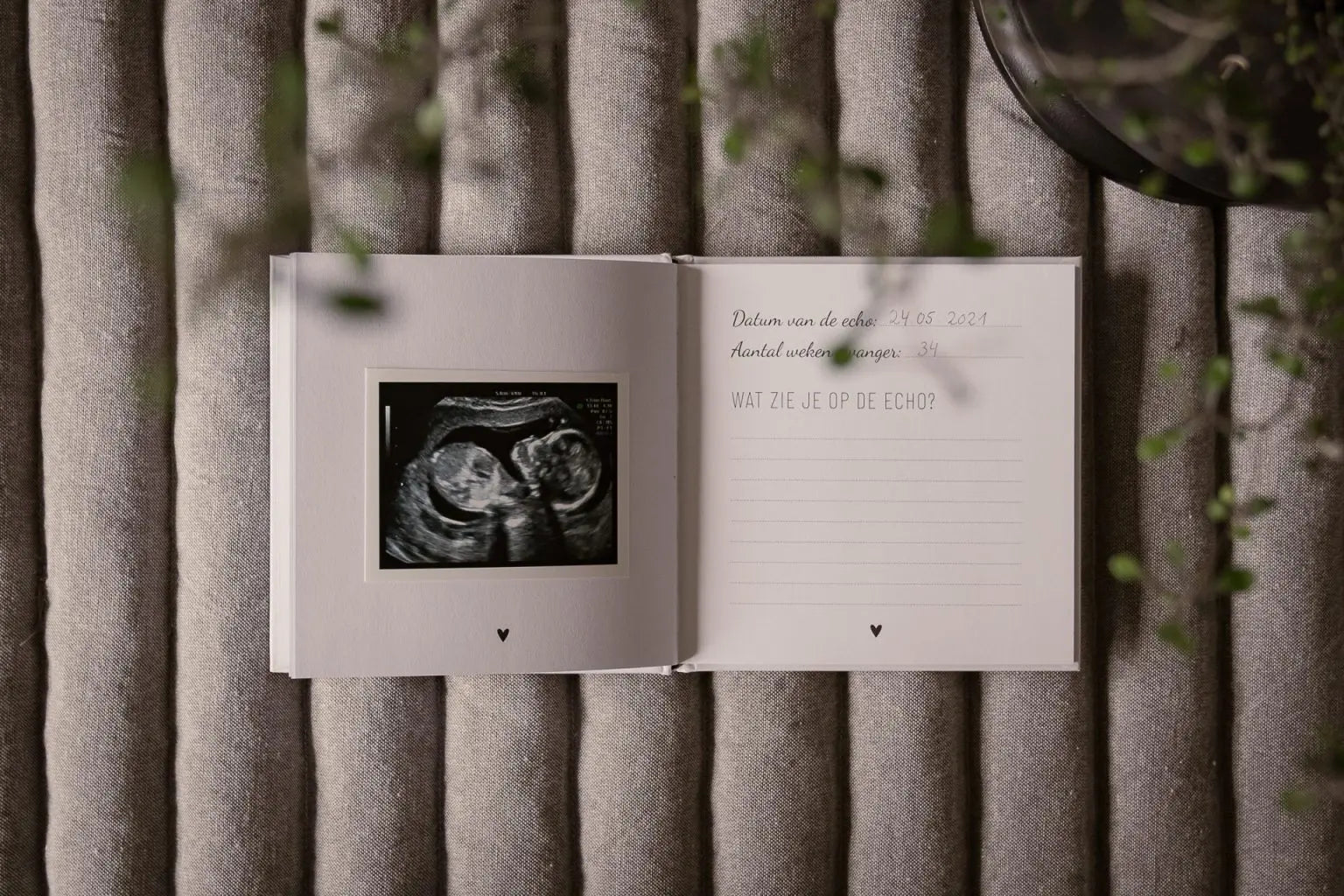 In dit echoboekje plak je de foto’s die je gekregen hebt van de echo’s tijdens de zwangerschap.